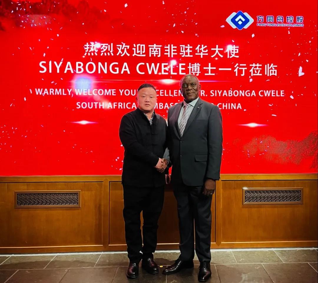 2021年12月23日下午,應方同舟控股董事局主席王建東、金鼎鋼鐵集團董事長王建軍的邀請,南非共和國駐華特命全權大使Siyabonga Cwele(謝勝文)博士、南非駐華公使銜參贊Yusuf Timol(約瑟夫)與哈佛大學訪問學者、清華五道口金融EMBA導師,國家開發(fā)銀行原常務副行長高堅共同到訪方同舟控股。雙方就控股公司及金鼎鋼鐵集團在南非的投資進行了詳細交流。方同舟控股海外事業(yè)中心總經理王國秦陪同座談。