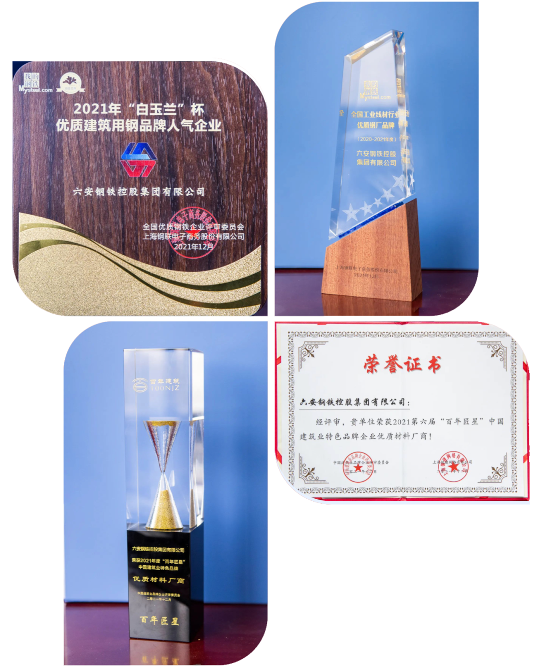 經(jīng)過全國優(yōu)質(zhì)鋼鐵企業(yè)評審委員會、中國建筑業(yè)品牌企業(yè)評審委員會、上海鋼聯(lián)電子商務股份有限公司、鋼鐵行業(yè)專家及各領(lǐng)域?qū)W者的嚴格選拔,憑借過硬的產(chǎn)品質(zhì)量和良好的市場認可度,六鋼集團分別榮獲“2021年’白玉蘭’杯優(yōu)質(zhì)建筑用鋼品牌人氣企業(yè)”、“2020-2021年度全國工業(yè)線材行業(yè)優(yōu)質(zhì)鋼廠品牌”、“2021年度’百年匠星’中國建筑行業(yè)特色品牌優(yōu)質(zhì)材料廠商”三項榮譽。其中六鋼集團連續(xù)兩年獲得“全國工業(yè)線材行業(yè)優(yōu)質(zhì)鋼廠品牌”,“‘百年匠星’中國建筑行業(yè)特色品牌優(yōu)質(zhì)材料廠商”更是連續(xù)三年當選。