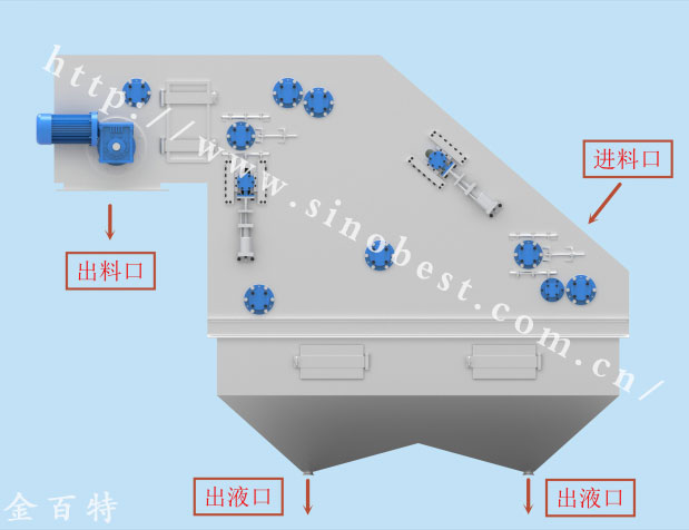 提取液進(jìn)入履帶壓濾分離機(jī)中,經(jīng)過雙履帶擠壓、過濾,渣和液分離。