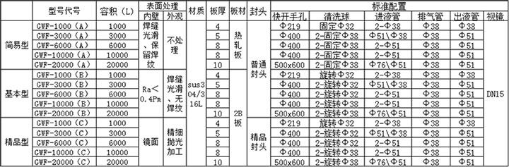 罐體上的配置,管口數(shù)量、大小可依據(jù)需要設(shè)計、制造。