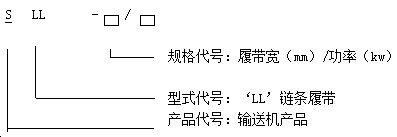 標記示例:SLL-1000/2.2型,表示履帶寬度為1000mm、功率為2.2kw的鏈條履帶提升機。